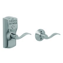 Schlage FE575 V CAM 619 ACC Camelot Keypad Entry with Auto-Lock and Accent Levers, Satin Nickel Features Product